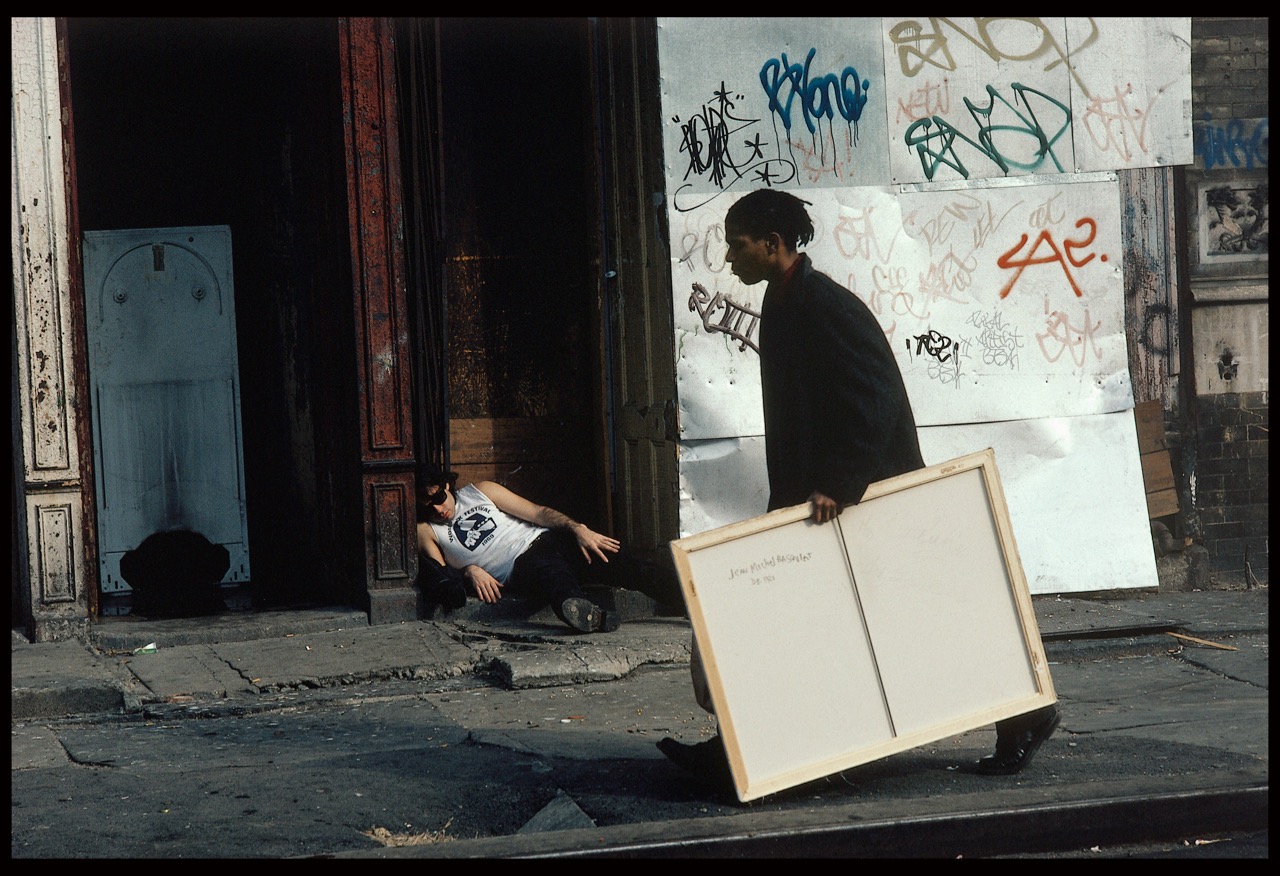 Much in Edo Bertoglio’s Downtown 81—an aurally dense, fanciful travelogue of sorts mainly filmed south of Fourteenth Street in December 1980 and January ’81—has vanished, not least its lead performer, Jean-Michel Basquiat, who died in 1988 at age twenty-seven. He stars as Jean, a struggling, charismatic artist, a character not too far removed from the painter himself at the time; Basquiat was several months away from his first solo gallery show. Gone, too, as of 2017, is Downtown 81’s writer, Glenn O’Brien, the sartorial sage then covering the city’s efflorescing No and New Wave music scenes for Interview—where Bertoglio was working as a photographer—and hosting the public-access show TV Party, on which Basquiat was a frequent guest. (O’Brien is a fleeting presence in the film, his character identified as “Rock Critic.”) Viewers of Downtown 81, which follows Jean over the course of twenty-four hours—a span that finds him released from the hospital, evicted, selling a canvas, and bumping into friends—become de facto archaeologists. We peer into the long-since-shuttered clubs that are key sites in the movie (the Peppermint Lounge, the Rock Lounge, the Mudd Club) and gaze at the rubble-filled lower Manhattan blocks that Jean traverses, where a Whole Foods or Capital One bank may now stand.
