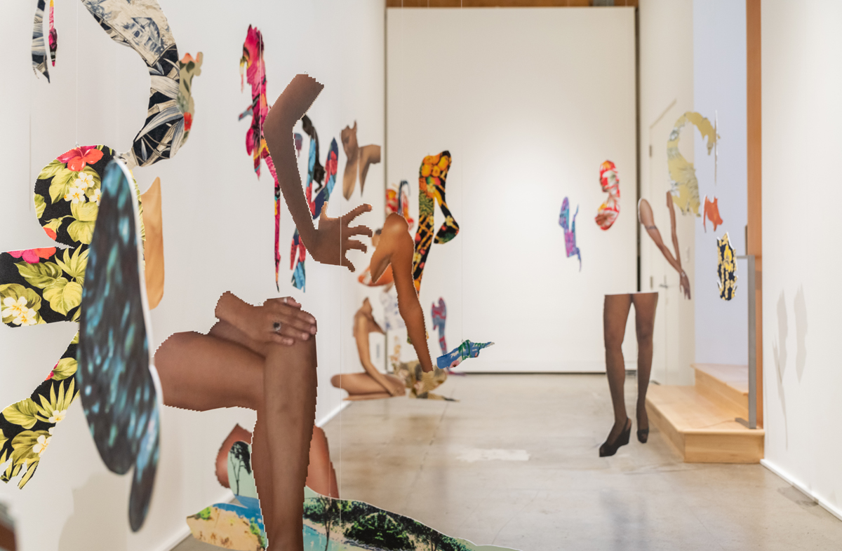 The Rose, installation view. Courtesy the lumber room. Photo: Mario Gallucci. Pictured: Joiri Minaya, #dominicanwomengooglesearch, 2016. UV print on Sintra and fabric collage.