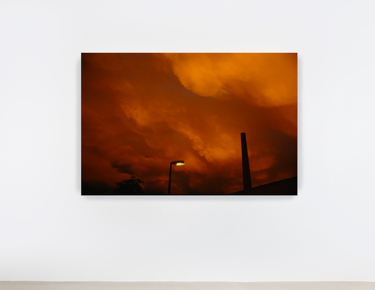 Nan Goldin, The sky on the twilight of Philippine’s suicide, Winterthur, Switzerland, 1997. Archival pigment print mounted on 2mm dibond with chassis, 59 × 88 5/8 inches. Courtesy the artist and Marian Goodman Gallery. © Nan Goldin.