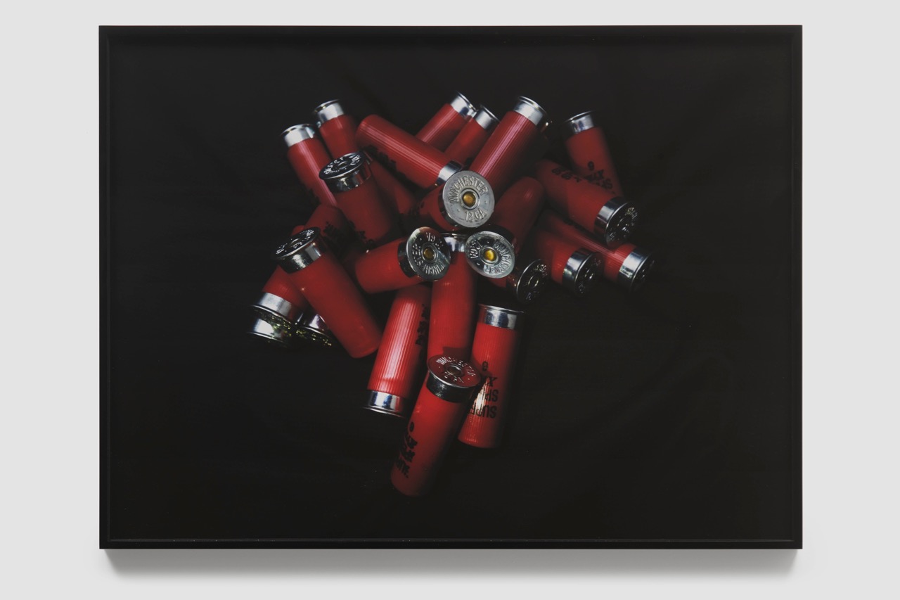 Teresa Margolles, Super Speed / El Paso, Texas, 2020. Pigmented inkjet print of box of 24 cartridges purchased from Walmart, Gateway Blvd, El Paso, TX, 26 × 35 3/8 inches. © Teresa Margolles 2020. Image courtesy the artist and James Cohan. Photo: Phoebe d’Heurle.
