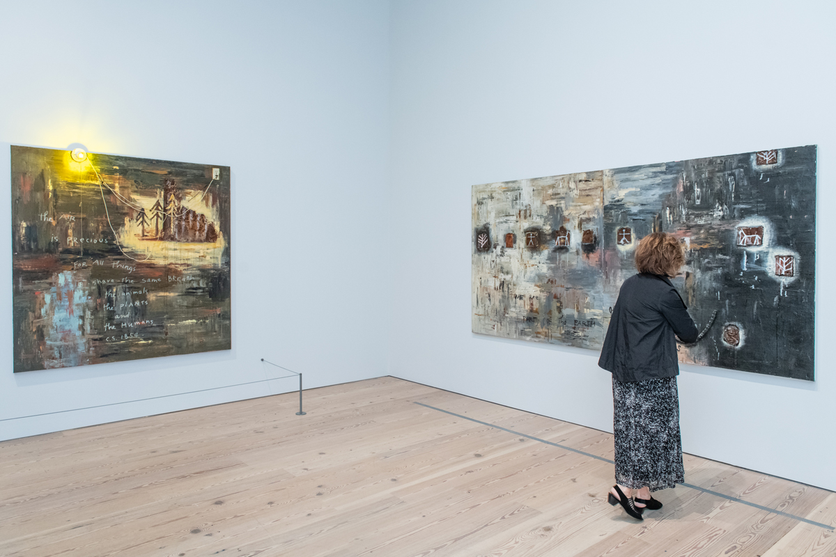 Jaune Quick-to-See Smith: Memory Map, installation view. Courtesy the Whitney Museum of American Art. Photo: Matthew Carasella.