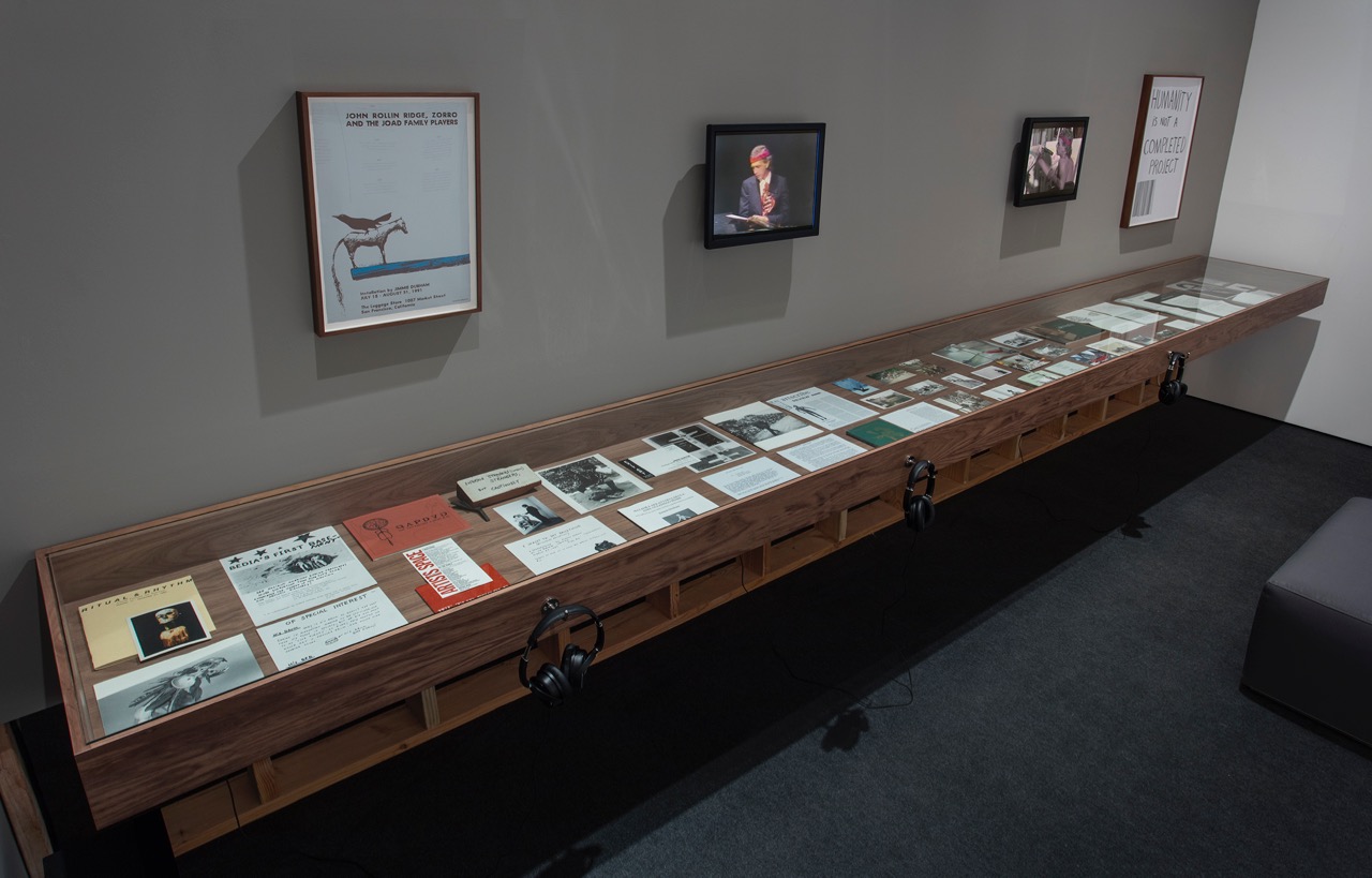 The Hammer exhibition has been curated with care by Anne Ellegood. Roughly chronological, it includes nearly fifty years’ worth of activities, including: found-object assemblages that combine urban detritus culled from Durham’s walks through New York City (traffic pylons, police barricades, random car parts) with signifiers of “Indian art” (skulls, feathers, animal skins); object-filled vitrines that parody the conventions of natural history museums; sculpted objects that demonstrate his proximity and distance from European modernism (his Anti-Brancusi from 2005 is made of stacked boxes, including one for a urinal bowl, for example); videos and films that span his whole career; and so on. The show was the result of years of conversation between Ellegood and Durham: while Ellegood quite rightly wanted to demonstrate the sculptor’s centrality to artistic developments here in the 1980s—ranging from institutional critique to video to performance—Durham was as resistant to being defined as an “American artist” as he was to being labeled an “American Indian artist”; in fact, he had decided to leave the US, first, in 1987, to Mexico, and then, in 1994, to Europe, in protest of the country’s treatment of its native population. As he has put it in interviews, eventually Ellegood wore him down—which is surely luck for us.