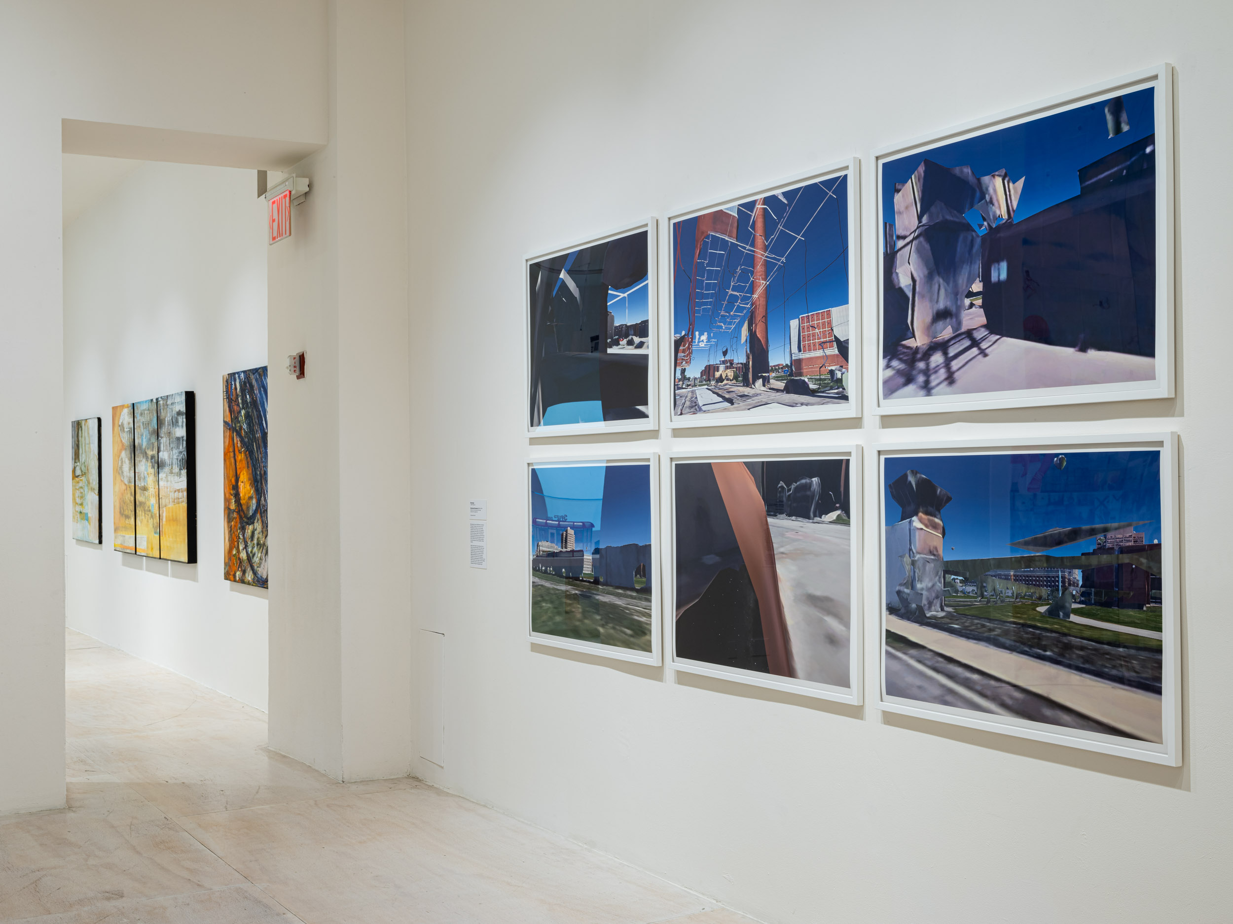 Marking Time: Art in the Age of Mass Incarceration, installation view. Pictured, hung on the wall, from left to right: Jared Owens, The Go Back, 2020; The Corner Cell, 2019; Ellapsium: master & Helm, 2016; Oculus, 2014. Image courtesy MoMA PS1. Photo: Matthew Septimus.