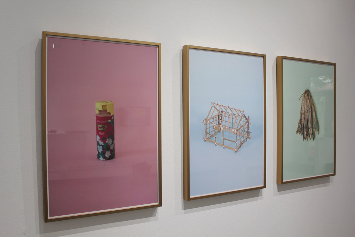 A number of works tie the refugee crisis of Partition to those happening today. One such example is Sreshta Rit Premnath’s Catch and Release (2023), an ethereal drawing made by sandwiching cotton rope, handwoven to resemble a chain-link fence, between two pieces of white paper. Another is Bangladeshi photographer Munem Wasif’s three photographs from a larger series titled Spring Song (2017–19). In the latter, humble objects, studio-lit to create crisp detail, are shot against vivid backgrounds: we see a beat-up bottle of skin lotion, a small toy house made of thin wood lath and string, a bundle of dried fish. The pictures wouldn’t be out of place in a magazine or on a billboard, though their status as commodities is iffy at best. Rather, they portray the possessions of a few of the millions of Rohingya people fleeing genocide in Myanmar who ended up in what is now the world’s largest refugee camp, in Bangladesh. Wasif’s choice to focus on signs of people’s determination to carve out a comforting ordinariness of daily life in the worst circumstances, rather than trotting out the usual pathetic images of people in distress, is gutting. The result is a quietly insistent reminder, one proffered by so many works in this exhibition, that we have not fully learned the lessons of 1947.