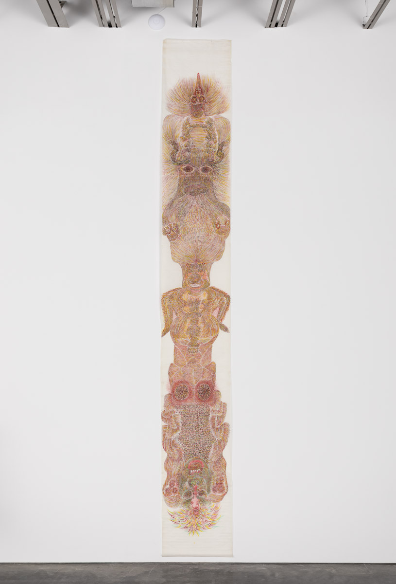 Guo Fengyi, Yamantaka, 2005. Colored ink on rice paper, 278 × 37 7/8 inches. Image courtesy Gladstone Gallery.