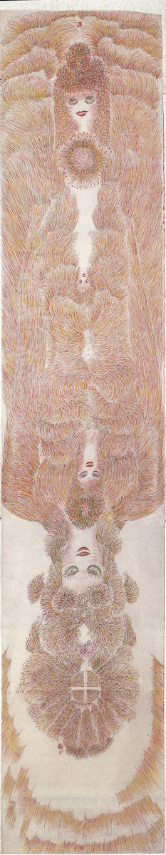 Guo Fengyi, Nüwa, 2005. Colored ink on Xuan paper, 162 7/8 × 27 5/8 inches. Image courtesy Gladstone Gallery.