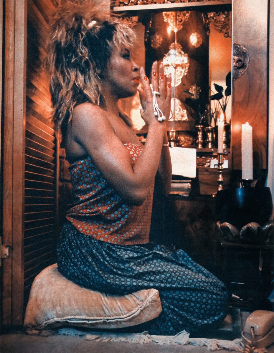 Tina had the right to remain silent but her innate exuberance didn’t allow it. She could have taken her story into oblivion or translated it into the quiet knowing between words in the sutras and hidden it there, but she was too powerful to withhold from the world what it needed from her. The public’s distress fetish is not her fault. And in sharp flashes of textile-laced light, she managed to transmute that reputation for victimhood into one as the queen of rock and roll. She was the near-omnipotent star whose vocal tone could rake her lyrics across you like daggers or insistent calls for liberation. Life forced her to be harrowing, the little wing between the field, the stage, and the highway spanning an endless echo of her promising we don’t need another hero. By then she was screaming. With her, an era of unspoken trouble closed for a lot of women, and with it, the notion that black women did not sing rock and roll was also overruled by her post-confession music. She felt the R & B standards she was made to sing for all those years while touring with Ike were a record of a way of life that needed contesting. She wanted to tune herself to her fantasy of a carefree and playful existence wherein the stakes of mischief were pleasure and not death. Rock and roll gave her a double breakthrough and a new identity. She would carry the burden of being as well known for her suffering as for her singing, but she didn’t have any interest in continuing to sing about down-home love affairs that were all devotion, no romance. The arpeggios in those songs trembled like the bodies of battered women half the time, and the other half, the songs were so smooth they became instantly false, cold overwrought attempts at packaging soulfulness when you had lived through what she had.