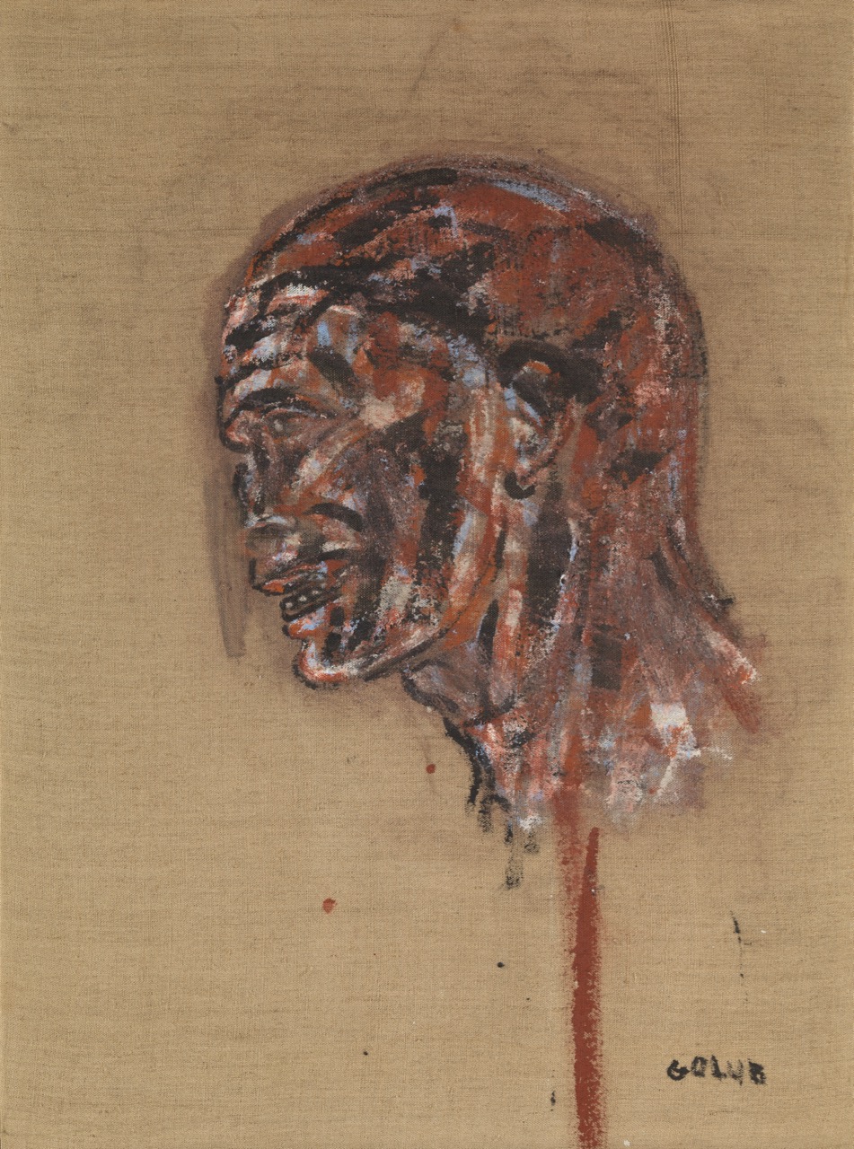 According to curator Kelly Baum, Golub’s “unflinching portrayals of power and violence have much to teach us in the twenty-first century, as does his belief in the ethical responsibility of the artist.” Certainly Golub had “raw nerve” and tenacity, and he no doubt cared deeply about human suffering. Yet his critique of power and violence consisted of confronting slaughter by representing slaughter, and trying to work through the effects of power by manipulating paint. Whether this amounts to a genuinely ethical response to the nightmare of historical inheritance and ongoing tyranny and bloodshed is an open question.