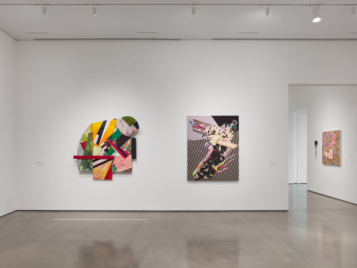 With Pleasure: Pattern and Decoration in American Art 1972–1985, installation view. Courtesy Hessel Museum of Art, Center for Curatorial Studies, Bard College. Photo: Olympia Shannon. Pictured, left: Sam Gilliam, The St. of Mortiz Outside Mondrian, 1984; right: Al Loving, Untitled, 1982.