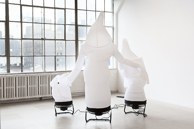 Paul Chan, Madonna With Childs, 2016. Nylon, fans, 101 × 100 × 69 inches. Image courtesy the artist and Greene Naftali.