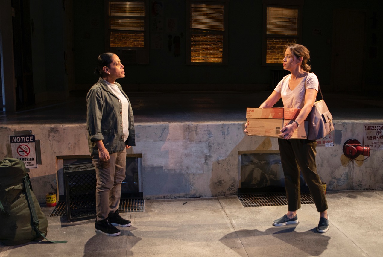 Guirgis occasionally lets scenes extend after fulfilling their narrative purpose. And—perhaps a related quality—some characters self-psychologize in that special way that oversharing talkers in American drama do. A few personalities feel familiar from the outset, too easily flagged—the beleaguered but flinty and caring Miss Rivera, for instance, or Jennifer, a patronizing white Columbia grad in her first counseling job (Molly Collier). Mostly, however, Guirgis offers fuller portraits, women whose contradictions emerge more slowly, making them more rewarding to discover: Sarge (Liza Colón-Zayas), a hard-nosed Iraq war vet, bullies the other residents relentlessly to conceal her damaged tenderness; when we perceive her capacity for love, we realize how her anger assuages pain and losses. (Colón-Zayas brings terrific verve and tenacity to the role.)