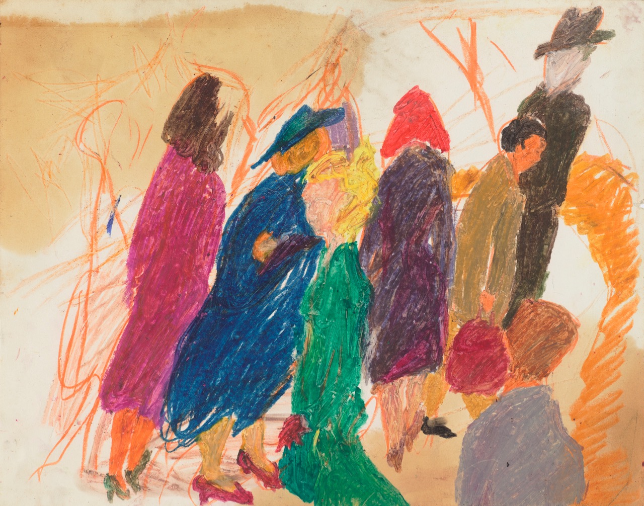 Mimi Gross, Street Scene, 1958. Oil stick on paper, 11 × 13 7/8 inches. Image courtesy the artist. Photo: Jeffrey Sturges.