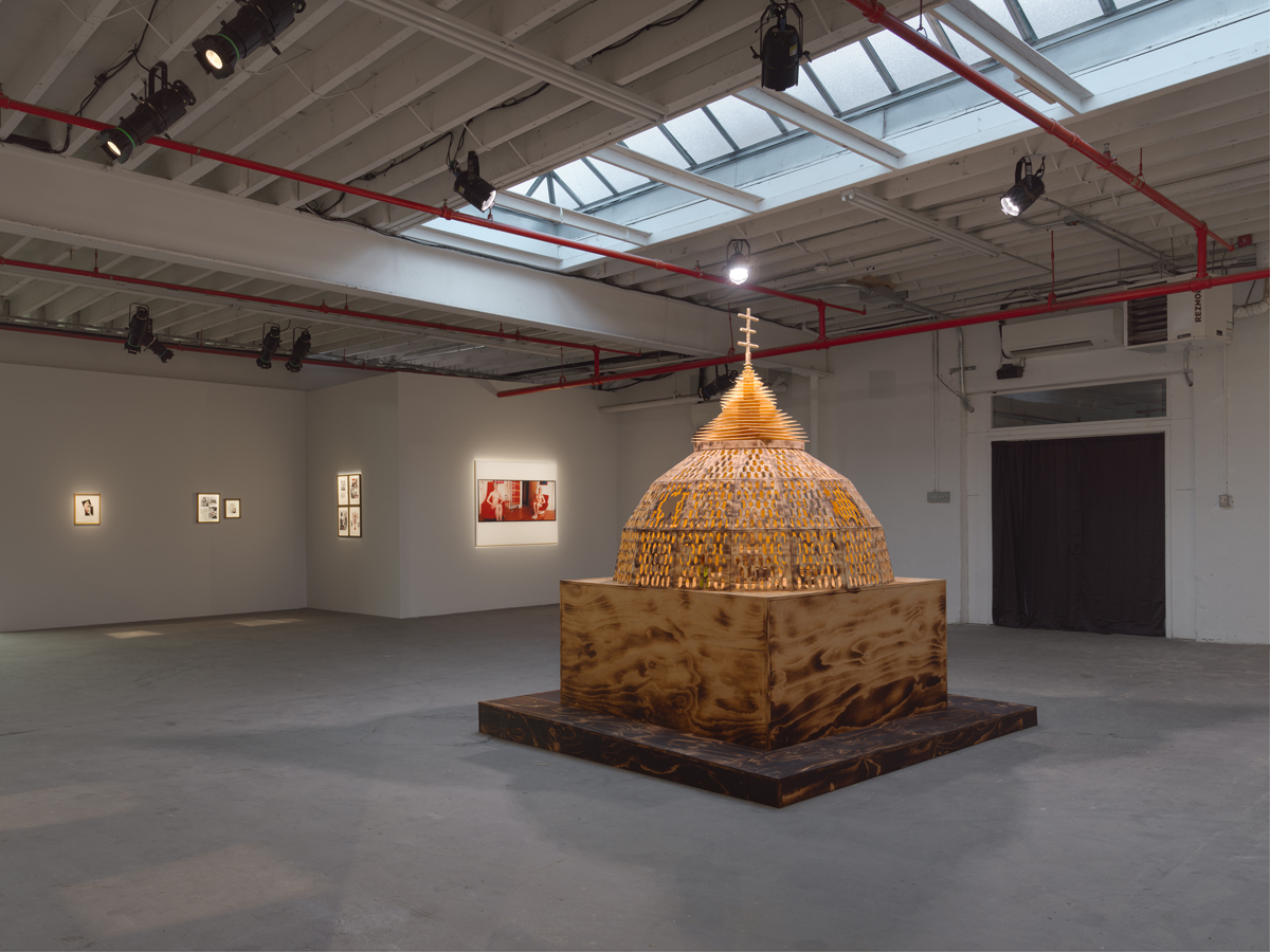 Breyer P-Orridge: We Are But One, installation view. Courtesy Pioneer Works. Photo: Dan Bradica. Pictured: Breyer P-Orridge, Cruciform (Sigil Working), 2005.